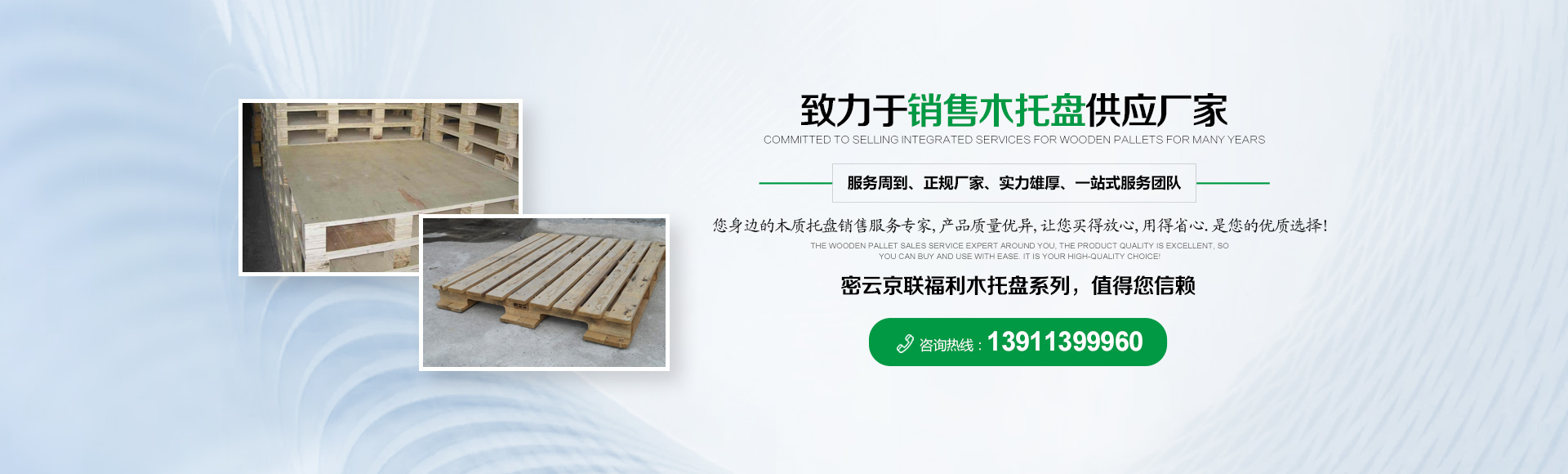 北京京聯(lián)國順木制品有限公司 (原北京市密云縣京聯(lián)福利木制品廠)成立于1993年,位于北京市密云縣西田各莊鎮(zhèn)蒼頭村,占地約5000平米。我公司工廠是一家大規(guī)模以銷售木托盤為主的生產(chǎn)廠家。本工廠是一家直接采購原木,按客戶要求生產(chǎn)規(guī)格尺寸的托盤,我公司工廠位于河北省承德市有著木材加工點(diǎn),可以做到,從山上的木頭下山到客戶手中的托盤都是一手貨,減少了中間商的費(fèi)用,所以我公司售出的產(chǎn)品對北京這個龐大的市場來說在同樣的規(guī)格尺寸的托盤來說價格比較占優(yōu)勢。